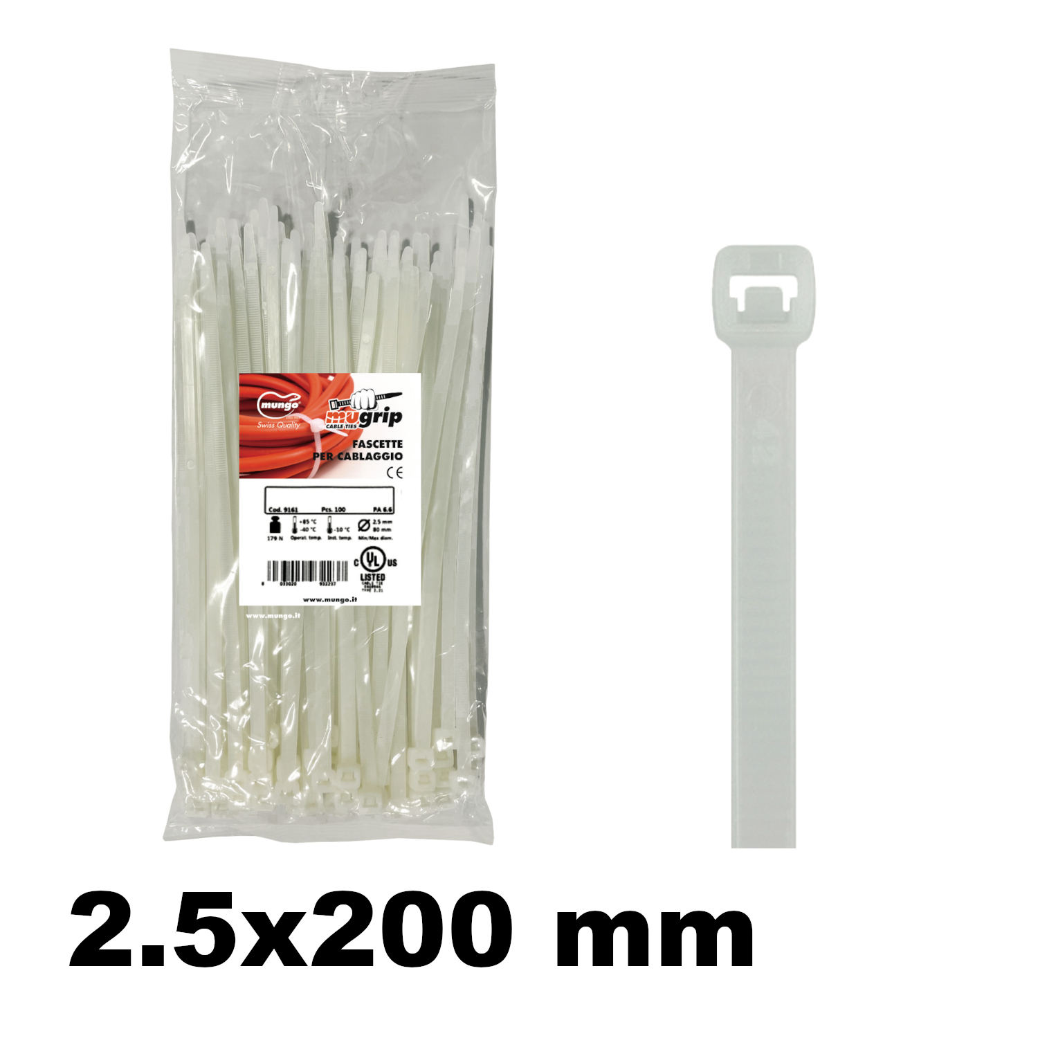 Mugrip fascetta poliamnide 6.6 2,5X200 naturale - confezione da 100 pezzi