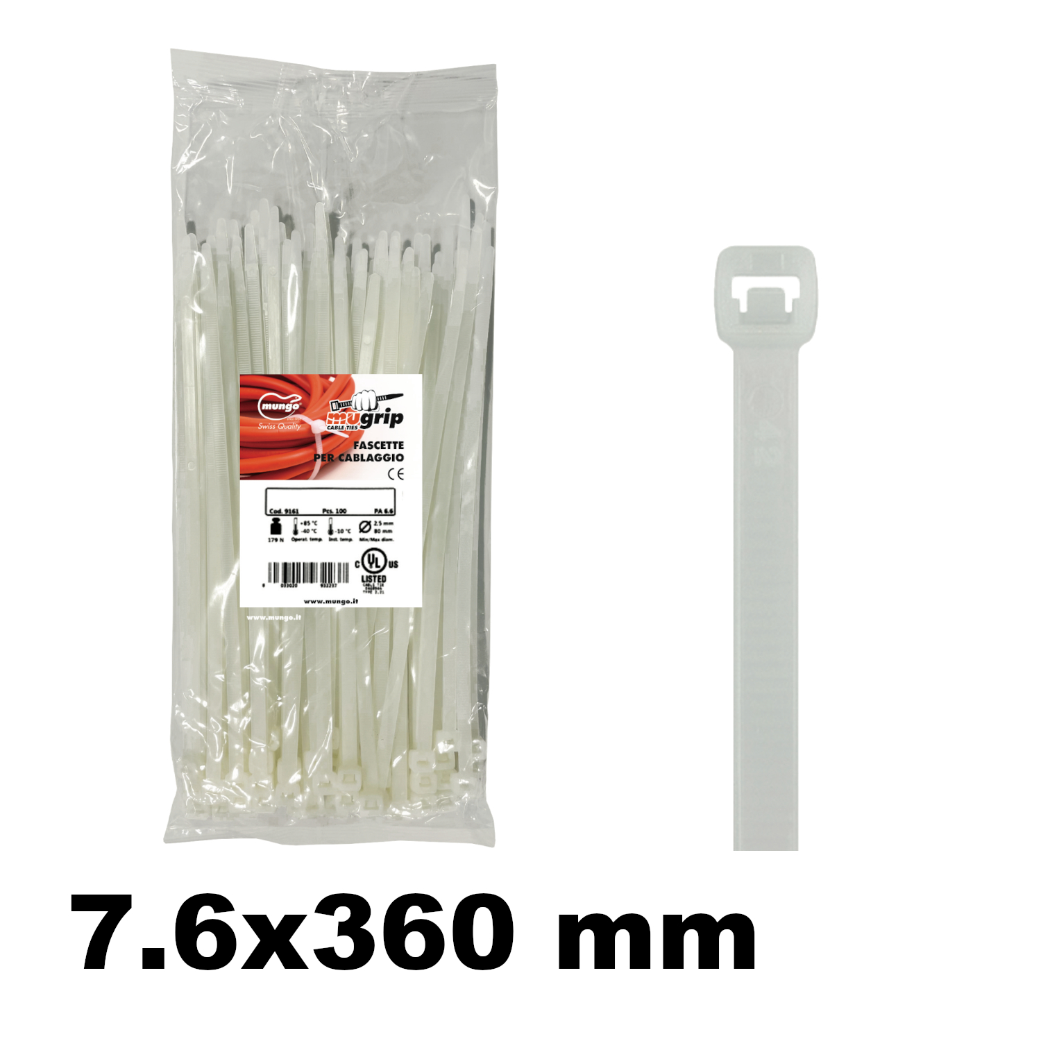 fascette mugrip pa 6.6 7.6x360 naturale x cablaggio - MUGRIP 7.6X360 NATURALE