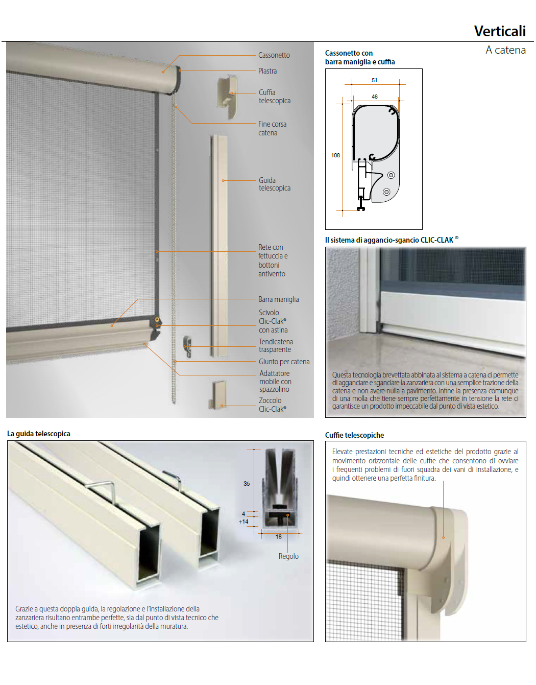 GAMMA è una zanzariera con rete in fibra di vetro, cassonetto arrotondato e movimentazione a catena con l’esclusivo sistema clic-clak, il Brevetto Internazionale che consente lo sganciamento della maniglia grazie ad una semplice trazione della catena. Il suo meccanismo a catena si combina perfettamente con i vantaggi del sistema a molla, ottenendo così un prodotto che si movimenta senza chinarsi e, al contempo, una rete che rimane sempre perfettamente tesa.