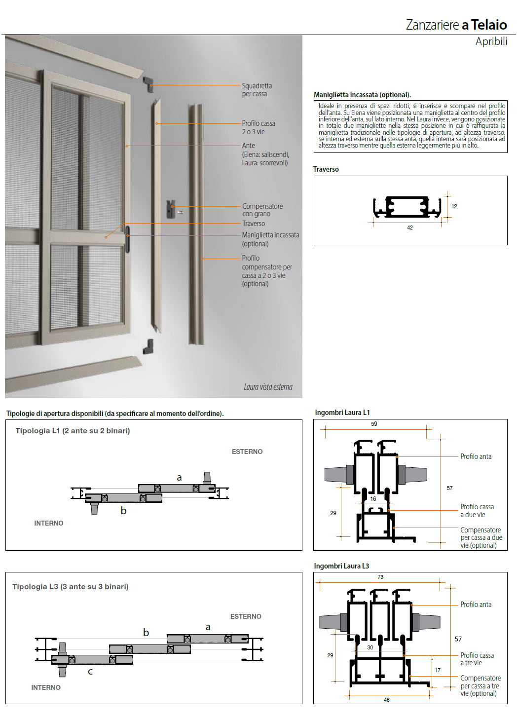 Laura è una zanzariere a pannelli scorrevoli verticalmente installabile anche in presenza di spazi molto ridotti.