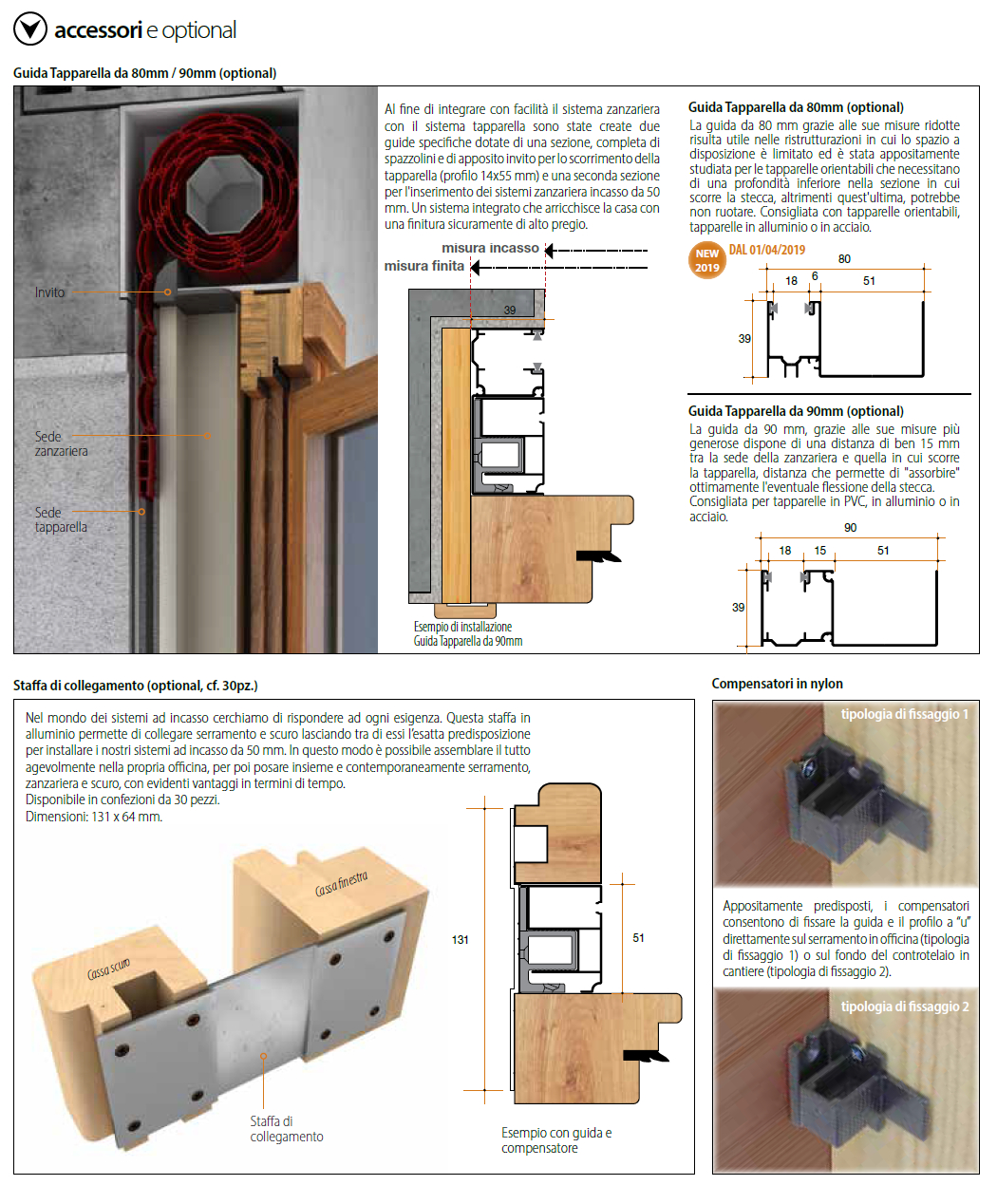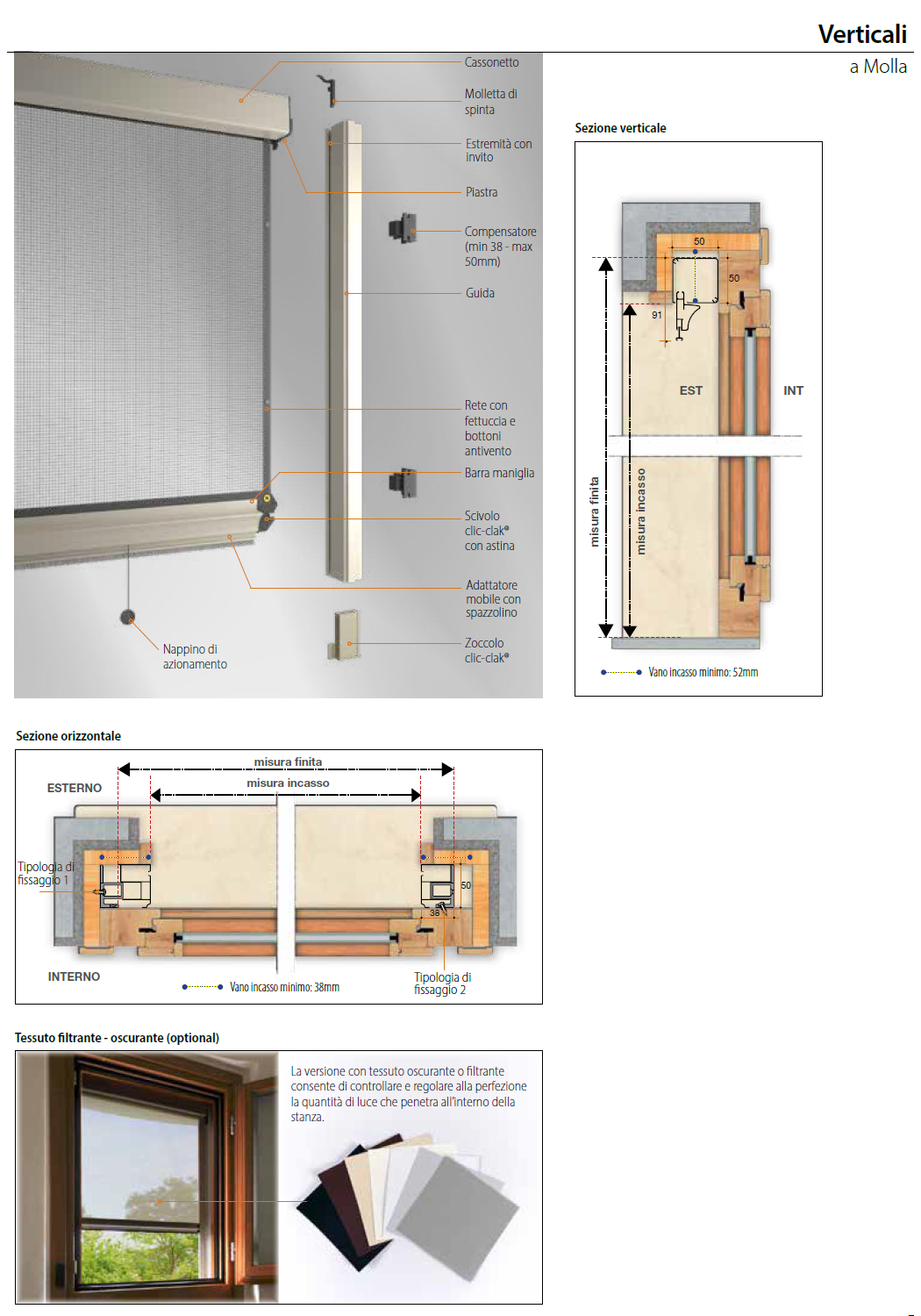 INCASSO: le misure ordinate saranno maggiorate degli ingombri di cassonetto e guide (tolleranza ±1mm).