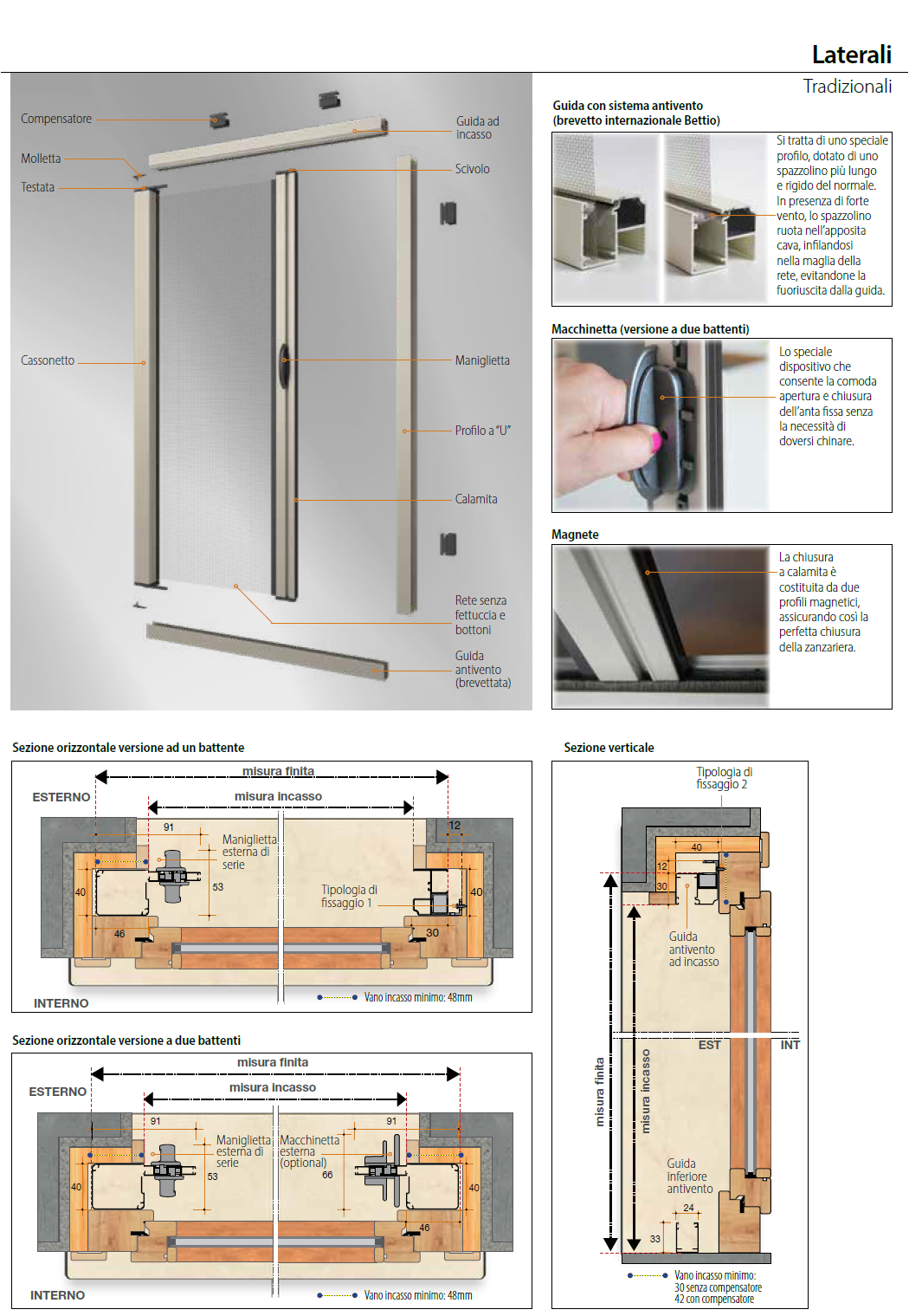 INCASSO: le misure ordinate saranno maggiorate degli ingombri di cassonetto e guide (tolleranza ±1mm).