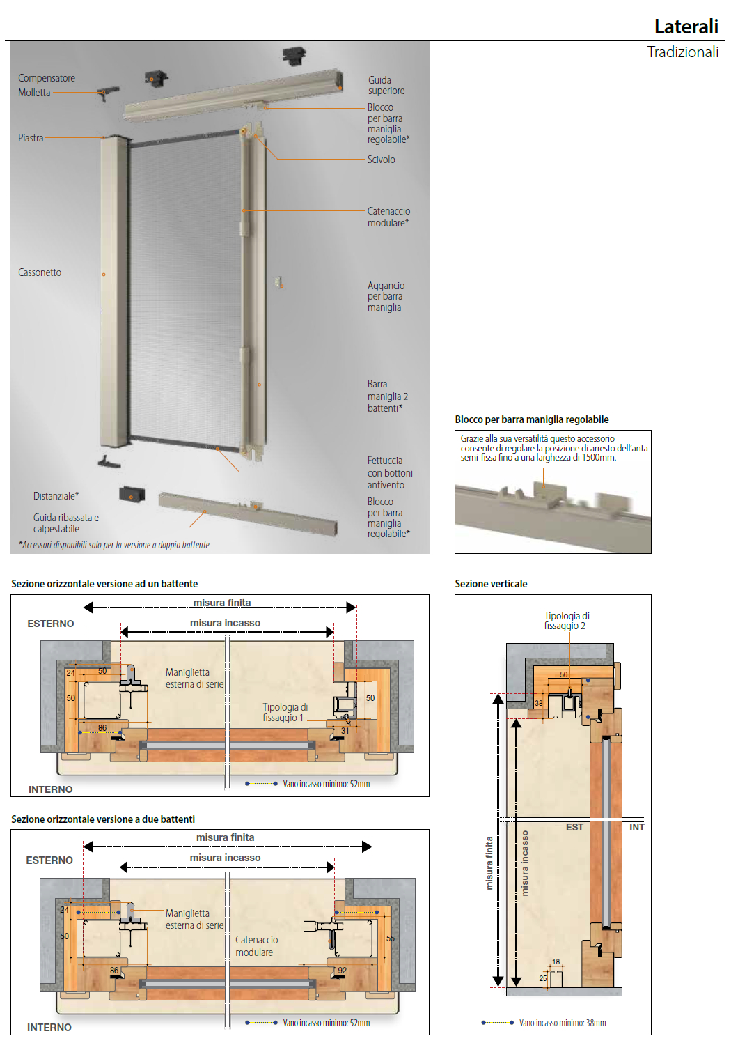 INCASSO: le misure ordinate saranno maggiorate degli ingombri di cassonetto e guide (tolleranza ±1mm).