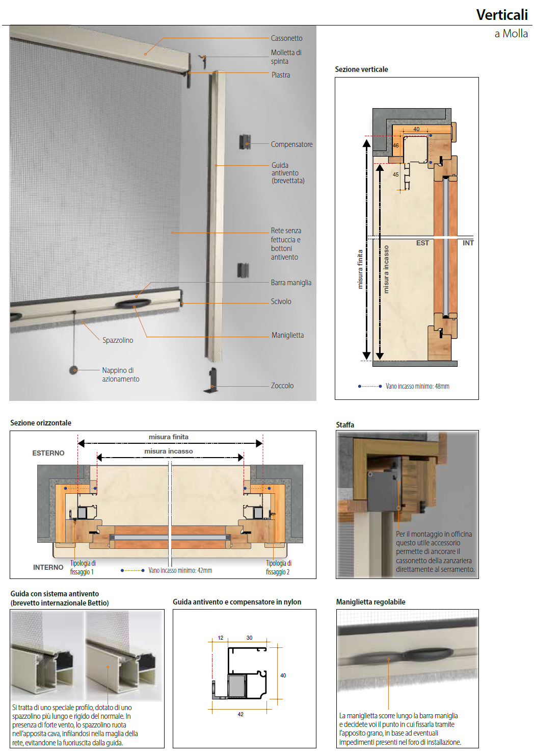 INCASSO: le misure ordinate saranno maggiorate degli ingombri di cassonetto e guide (tolleranza ±1mm).