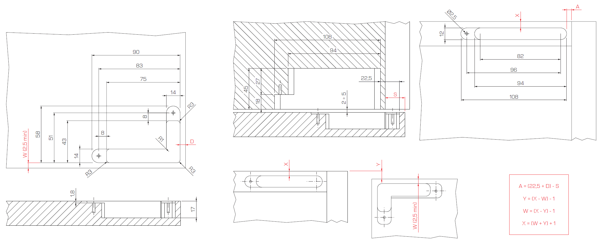 Cerniera a scomparsa ad alta portata per ante a battente.