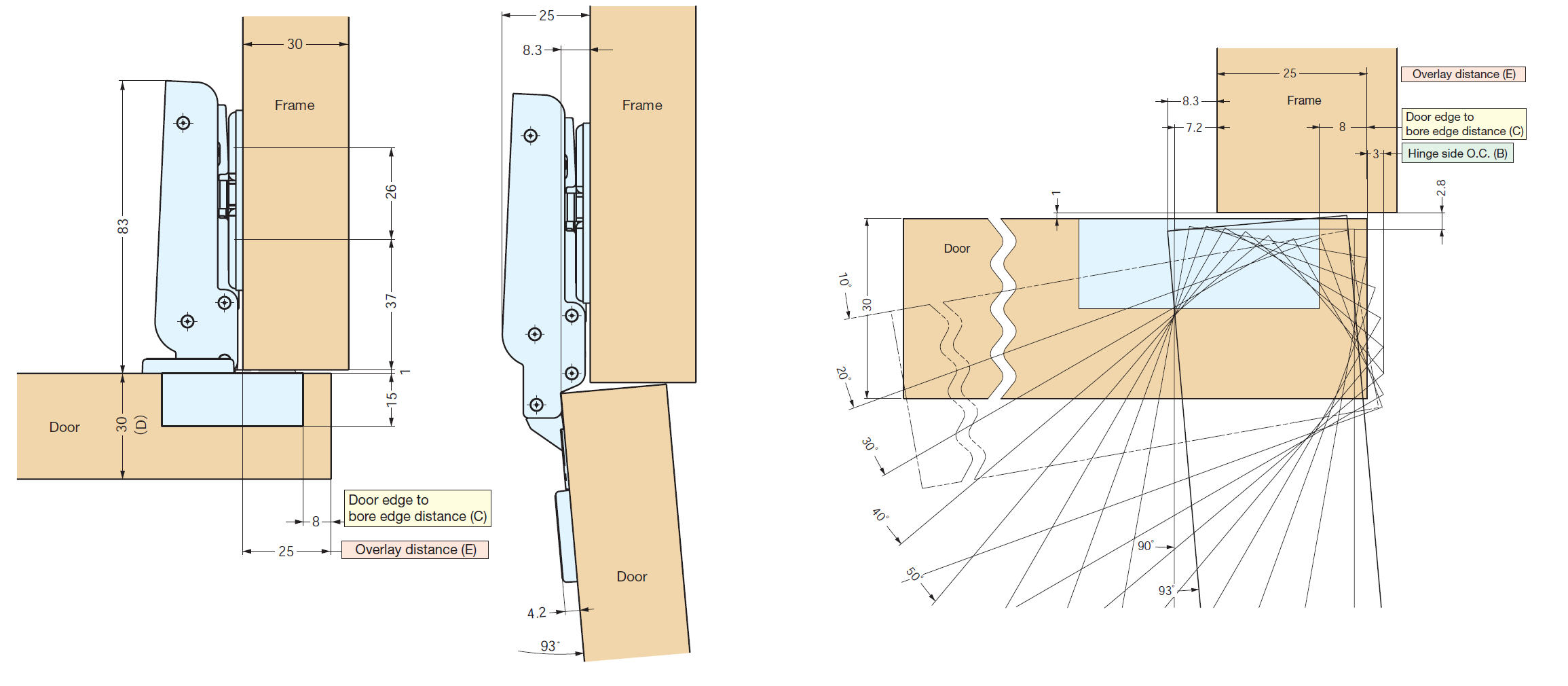 Collo diritto per montaggio con anta in battuta con sormonto sulla
