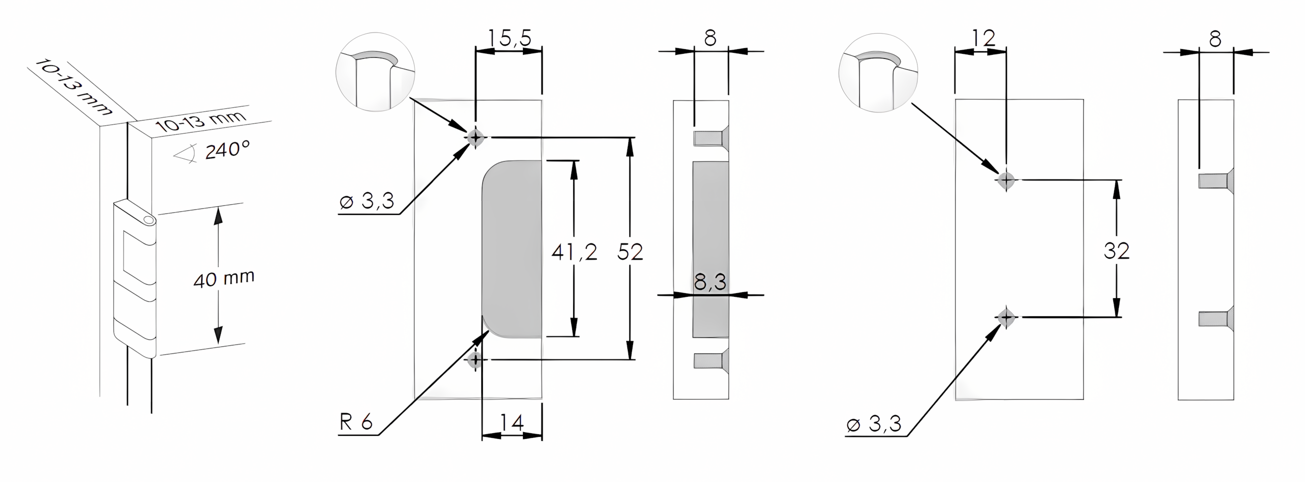 Cerniere speciali per ante di spessore ridotto e pannelli HPL 10-13 mm