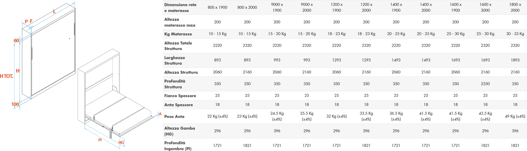 Ideale per ottimizzare gli spazi più contenuti senza rinunciare alla funzionalità, questo sistema per letti verticali si adatta ad armadi con una profondità minima di appena 350 mm.