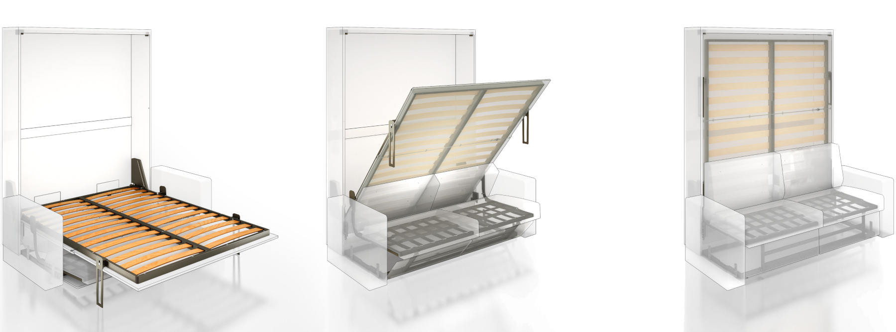 La trasformazione da zona giorno a zona notte è semplice e controllata, grazie all'assistenza di molle a gas che rendono il movimento fluido e leggero.