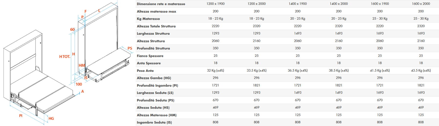 Ideale per chi cerca una soluzione salvaspazio senza rinunciare alla personalizzazione, questo sistema per letti verticali si inserisce perfettamente in armadi con profondità minima di 350 mm.