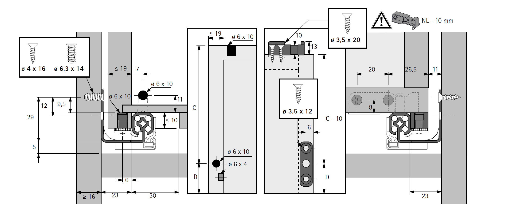 Adatto per cassetti con spessore spondina di max. 19 mm