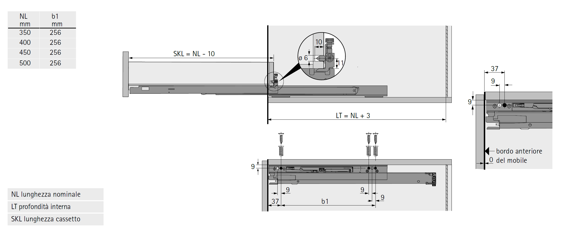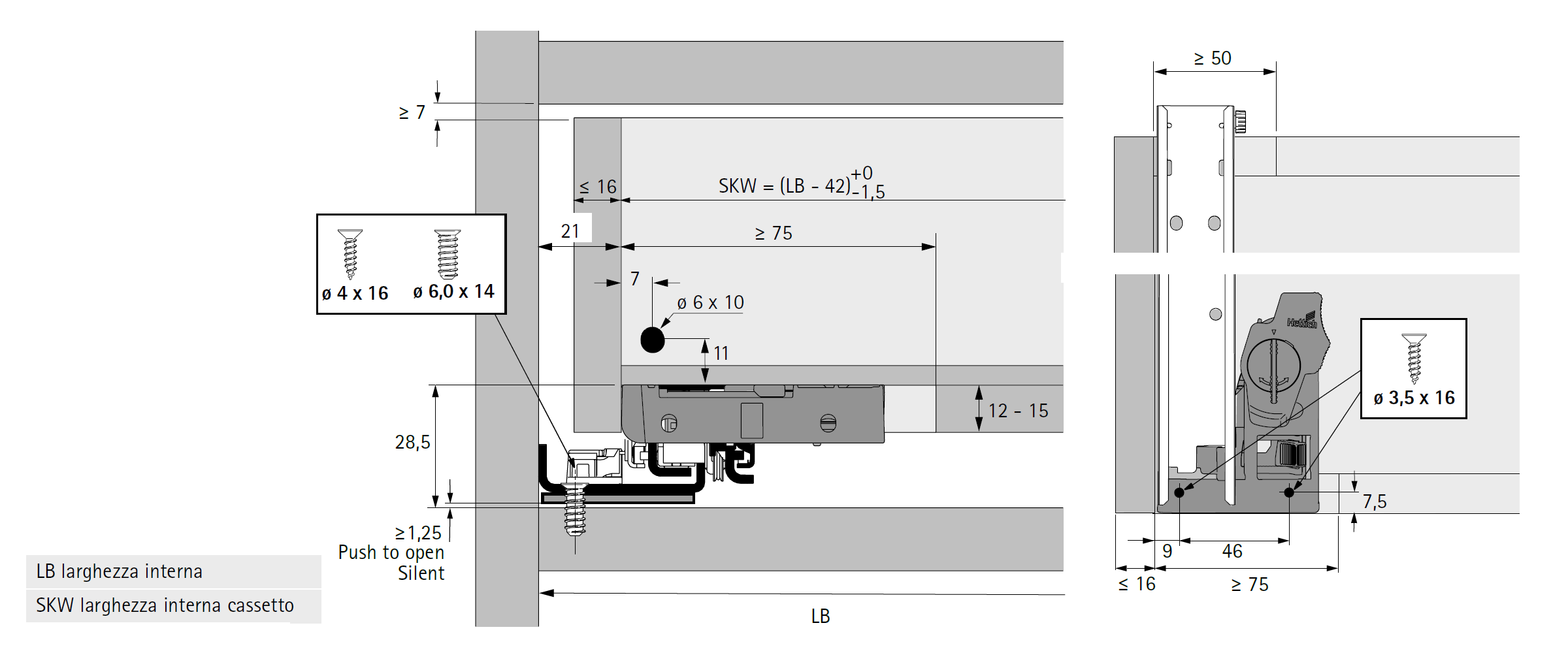 Adatto per cassetti con spessore spondina di max. 16 mm
