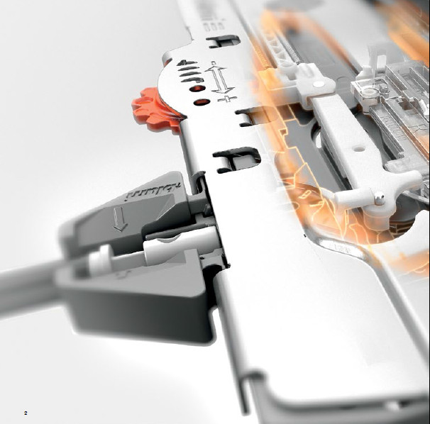TIP-ON BLUMOTION unisce i vantaggi del supporto per l’apertura meccanico TIP-ON con il collaudato ammortizzatore BLUMOTION per una chiusura dolce e silenziosa, completamente meccanica.