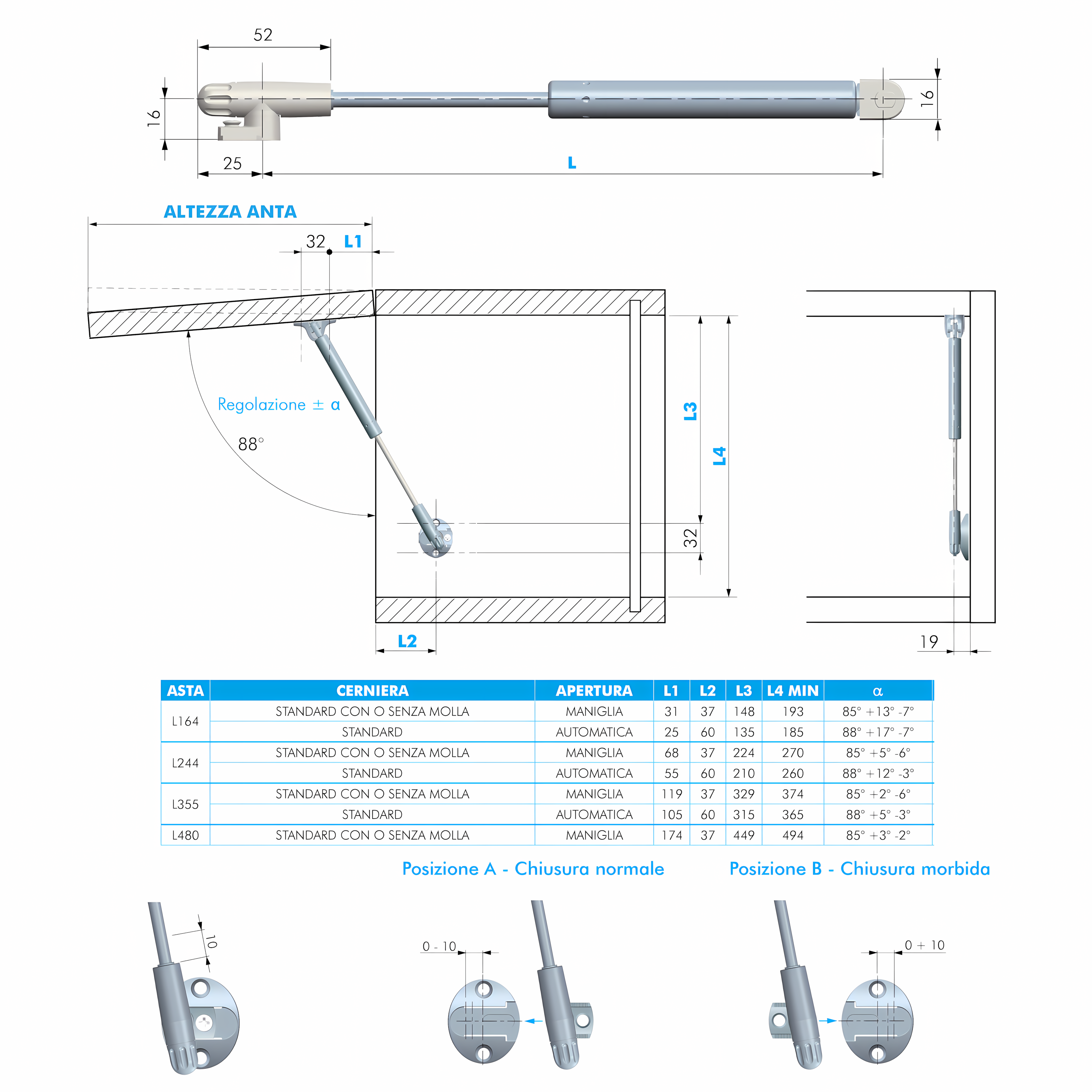 Questi pistoni a gas sono disponibili in due versioni principali, versione frizionata: permette di fermare l’anta nella posizione desiderata sia in fase di apertura che di chiusura e versione soft-stop: l’anta viene spinta gradualmente fino alla sua massima apertura, garantendo un movimento fluido e controllato.