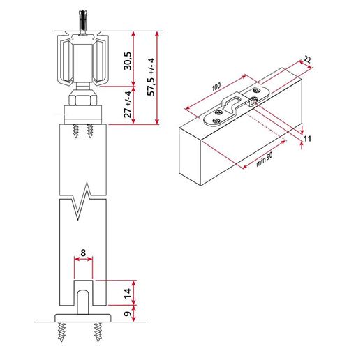 Impiego consigliato per porte fino a 100 kg.