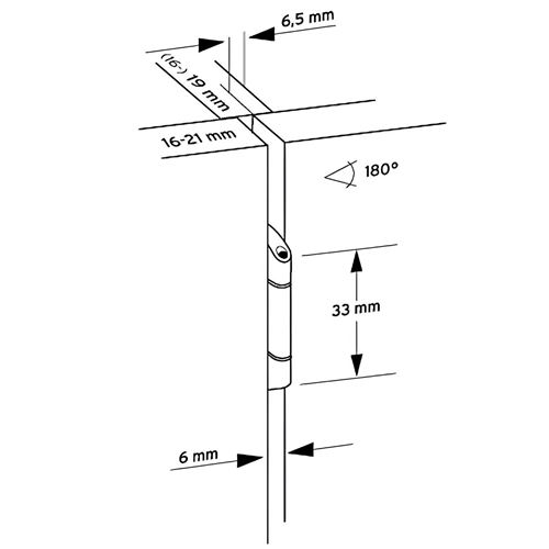 Ali per cerniere Top 3000 per applicazione due anta su unica spalla- sormonto 6.5 mm.- fuga minima 6 mm.Apertura fino a 180°Gli scodellini non sono forniti con l'ala e devono essere ordinatia parte (per ogni ala sono necessari 2 scodellini)