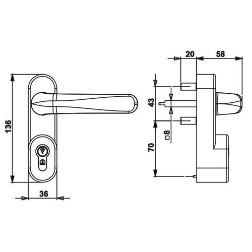 Gruppo maniglia esterno con cilindro per antipanico Modulo (a barra e