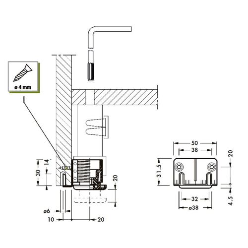 livellatori 300 zm laterali c/pioli zinc. int. 32 s/chiavi