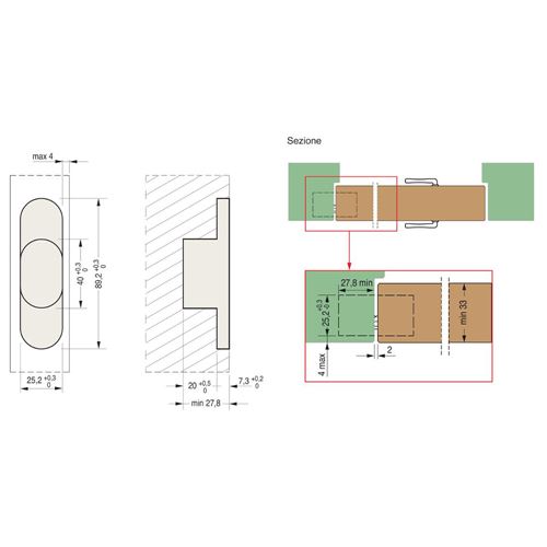 Spessore minimo porta: 33 mm