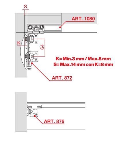 Guida di scorrimento inferiore 876 fissaggio laterale per sistema ZigZag