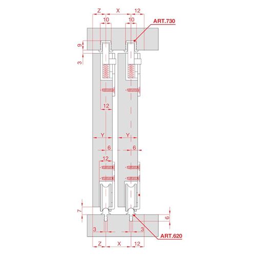 Sezione incassolarghezza 40 mm, profondità 9mm