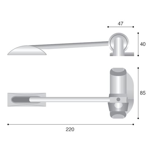 chiudiporta modern a molla mm. 85 argento asta cm.22 forza standard - CHIU MOD ARG 85