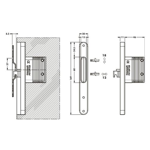 Regolazione verticale 18 mm.