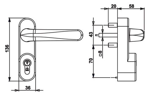 Gruppo maniglia esterno con cilindro per antipanico Modulo (a barra e