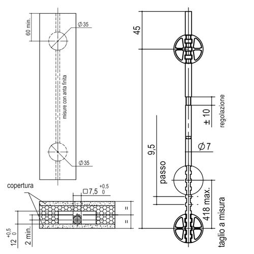 Spessore minimo pannello mm. 18/20 (a secondo dello spessore della