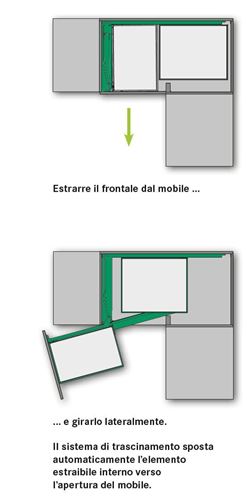Telaio per meccanismi corner Magic con estrazione sinistraPer basi larghezza interna da 860 a 971I cesti sono da ordinare a parteFinitura verniciata grigio alluminio