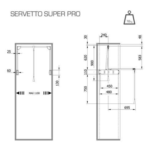 Appendiabiti saliscendi Servetto SuperPro con supporti tubo rinforzati