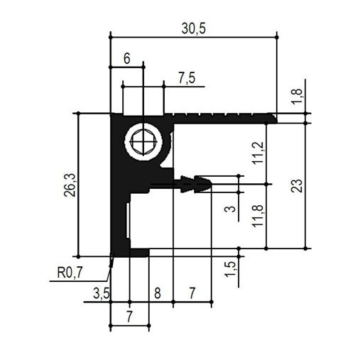 Profilato contromaniglia con tenditore raddrizza ante integrato