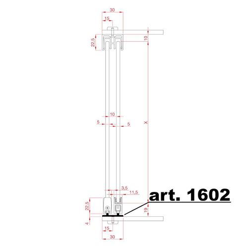 Binario 1602 alluminio anodizzato argento asta cm 300 base per cristalli scorrevoli