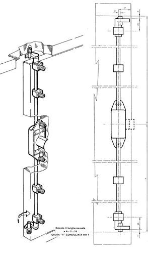 Corpo serratura ad aste rotanti con catenaccio laterale.