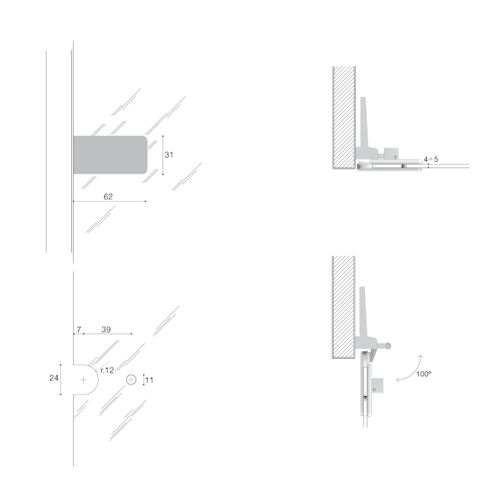 Cerniera per cristalli 1024 per ante in luce finitura oro