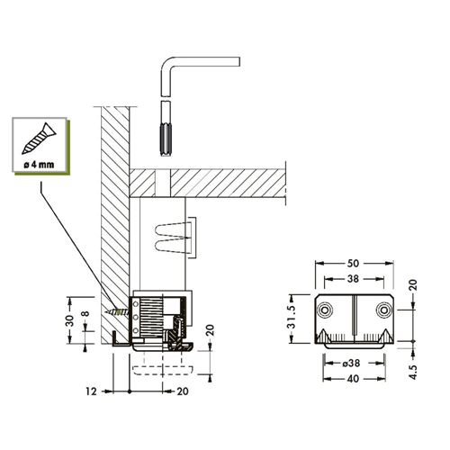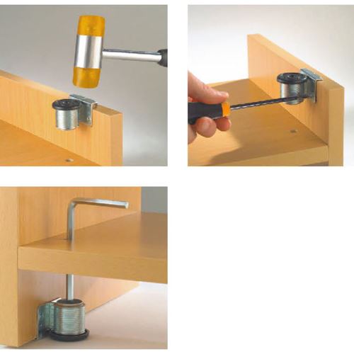 Livellatori con staffa laterale con punteRegolazione da 0 a +20 mm.Portata 150 Kg.Regolabile in zama con piattello girevole in AbsRegolazione con chiave esagonale mm. 6