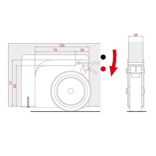 Ruota destra incasso fissa con freno per letti scorrevoli