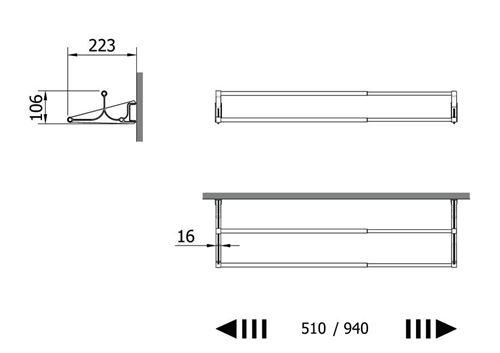 Portascarpe estensibileSupporti laterali realizzati in materiale plastico grigioBacchette allungabili in alluminio satinatoUtilizzabile per scarpe con e senza taccoProfondità mm. 223Larghezza regolabile da mm. 510 a mm. 940