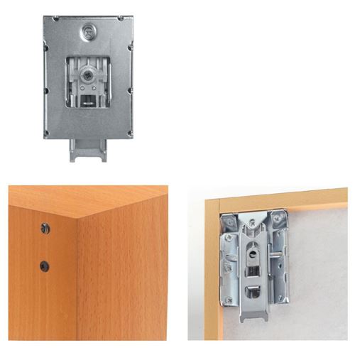 Supporti pensili da montare nel vano dietro lo schienale del mobileRegolazione frontale 14 mm.Regolazione verticale 16 mm.Realizzato in acciaio e zama
