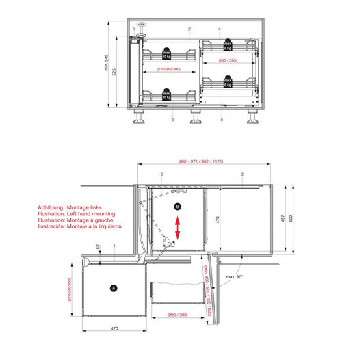 Larghezza regolabile da mm. 862 a 971