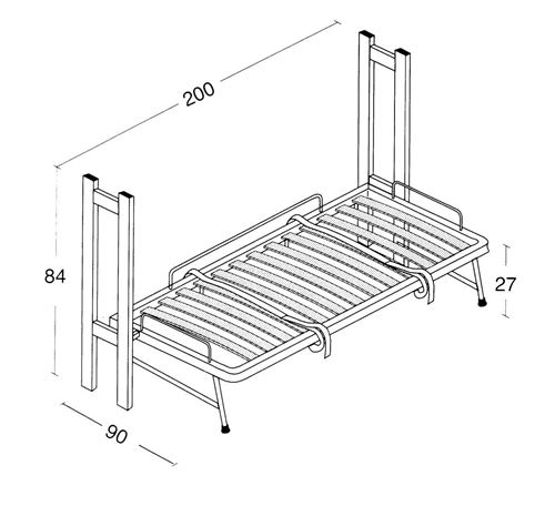Rete laterale (orizzontale) ripiegabile a scomparsa per armadioPiano reti con listelli di faggioTelaio in tubolare di acciaioMisura reti cm. 183 x 80