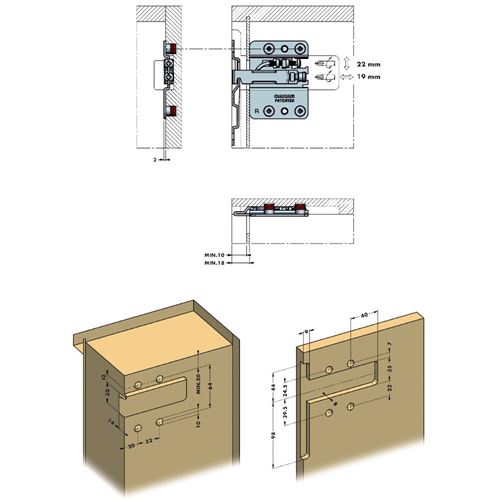 La sporgenza ridotta permette il suo utilizzo per mobili sospesi con cassetti estraibili
