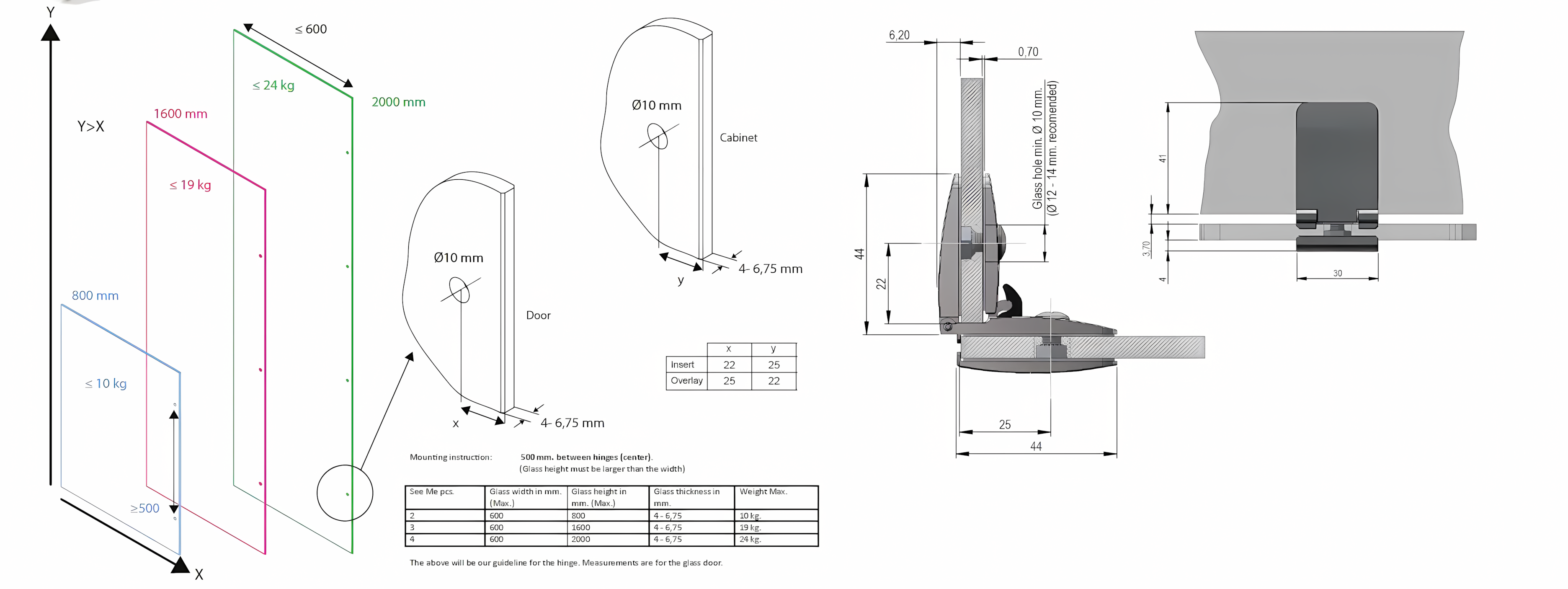 Richiedono un foro diametro mm. 10 nel cristallo.