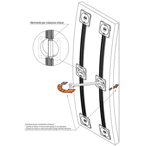 Tenditori raddrizza ante in acciaio con copertura in materiale plastico coestruso con lamelle flessibili con elevata tenuta all'estrazione e scodellini di tenuta in zama.