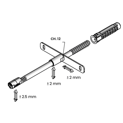 Reggimensole a scomparsa regolabili con tasello in nylon e piastra forata da avvitare.