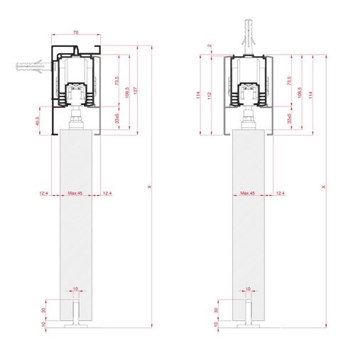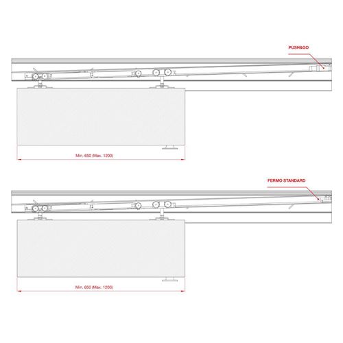 Per porte spessore massimo 45 mm, larghezza da 650 mm a 1200 mm, peso