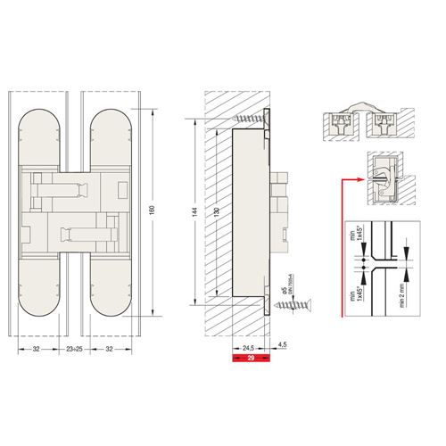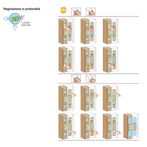 Cerniera invisibile regolabile su tre assi indipendenti