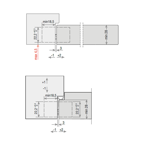 - Z - profondità -1, +2 mm