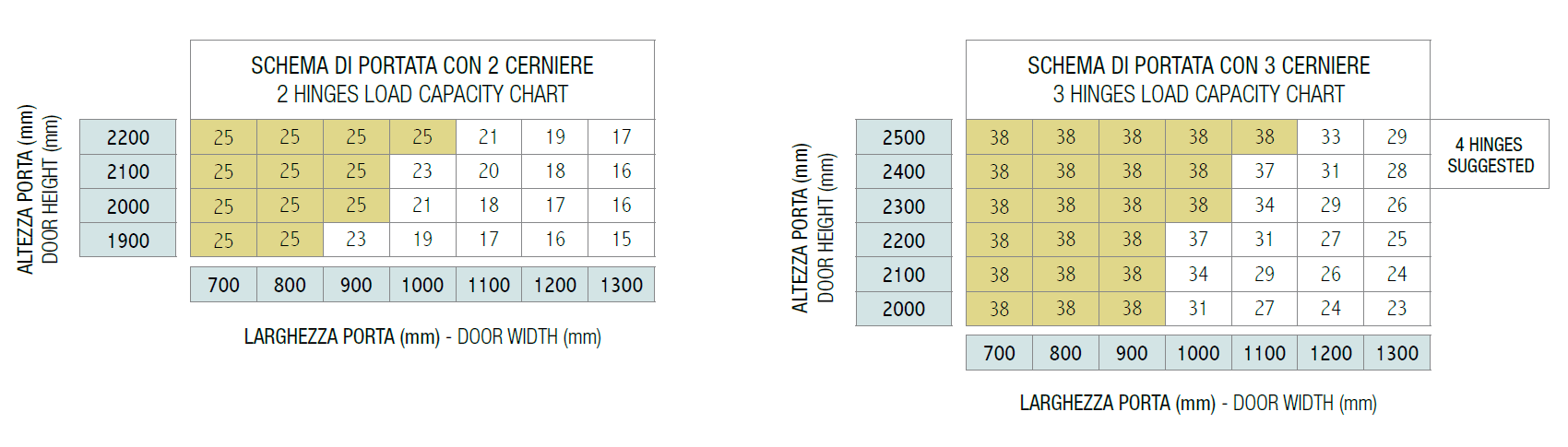 Portata fino a 40 kgcon l'applicazione di tre cerniere