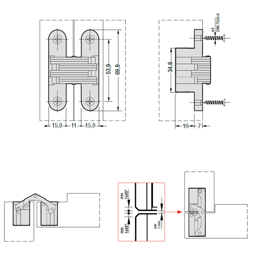 Cerniere invisibili acciaio zama mm. 69,8x15,9